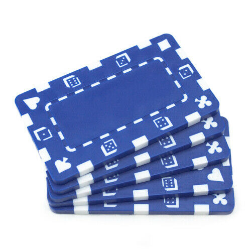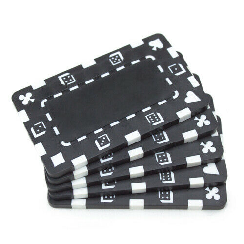 These European-style rectangular poker plaques are a great addition to any poker game. These plaques have an outer edge decorated in a suited pattern with dice in between each suit. Each plaque weighs 32 grams, making them much heavier than normal chips. However, you can still shuffle and play with them like traditional round poker chips. The plaques measure 2 7/8" long, 1 3/4" wide and 1/8" thick.